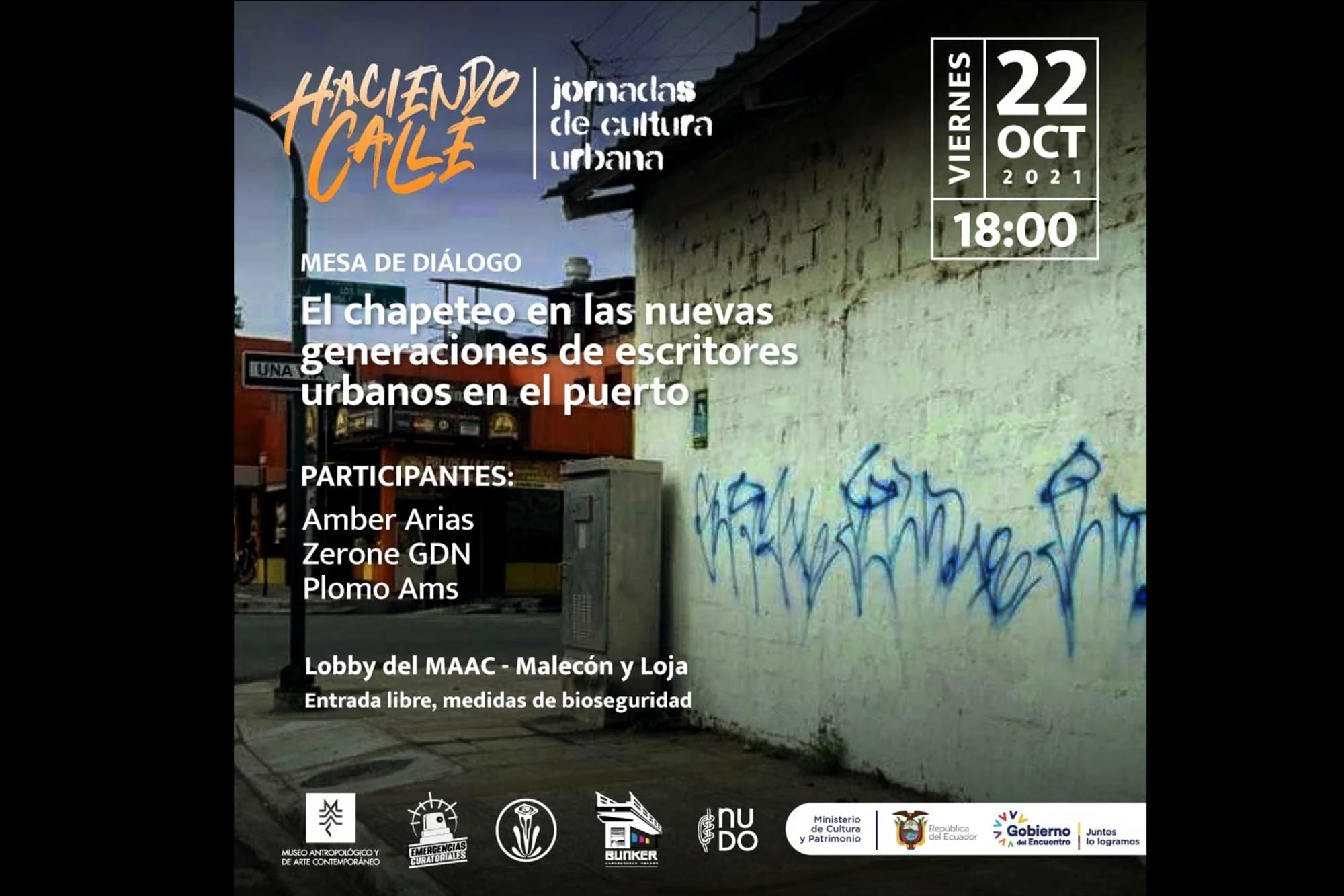 “El chapeteo como generador de memoria en la urbe” es el tema del diálogo que sostendrán Buxter 42 Contras, Letra 70 y Snop 10 GDN en la nueva cita de las Jornadas de Cultura Urbana que se vienen desarrollando en el MAAC, como parte del proyecto “Haciendo calle” que lidera la doctora María Fernanda López, docente de la Universidad de las Artes.