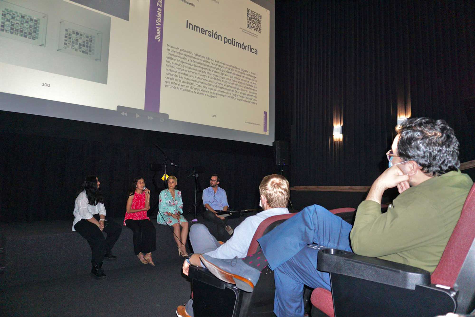 Esto porque luego de las intervenciones del rector y del vicerrector Académico, doctores William Herrera y Bradley Hilgert, respectivamente, las egresadas Laura Nivela, quien es ahora funcionaria administrativa de la UArtes, y Tamia Sánchez, una de las tres primeras graduadas de Danza, fueron invitadas por José Miguel Cabrera, director de UArtes Ediciones, a compartir los contenidos de los trabajos de tesis que investigaron y desarrollaron y que constan en el catálogo junto con los de todos los estudiantes de también todas las carreras de las escuelas de nuestra institución de educación superior.