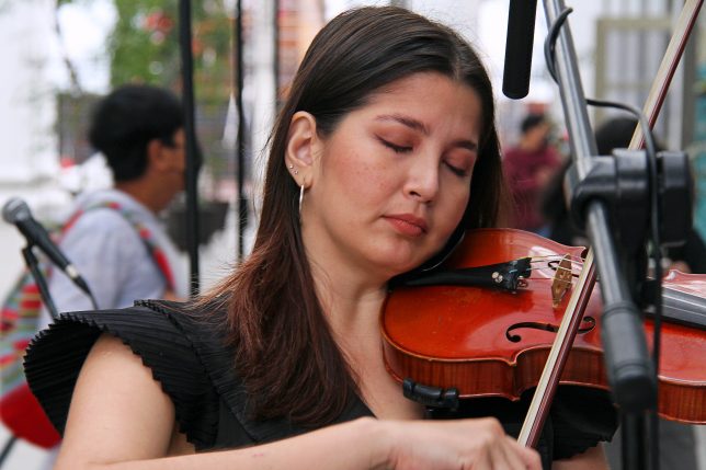 Acompañada de su violín, Andrea Mazzini, de la Dirección de Relaciones Internacionales, interpretó el “Himno a la Alegría”, un fragmento del cuarto movimiento de la 9na Sinfonía de Beethoven, así como el segundo movimiento de “El Invierno”, de Vivaldi, que pertenece a las cuatro estaciones. Su intervención imprimió un marco sonoro a la calle de honor simbólica por donde transitaron nuestros alumnos hacia sus respectivas aulas.