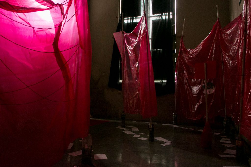 “Plastic bodies”, de Cristina Morales, Saro y Roberto Frizone. Es una instalación luminosa hecha con las botellas de plástico que han albergado el agua que he consumido en Guayaquil durante los últimos cinco meses. Reflexiona sobre las cosas esenciales sin las cuales no podríamos continuar viviendo y la gestión que hacemos de ellas, tantas veces como si no importaran nada. La poesía funciona como el agua para algunos cuerpos, circula por dentro de ellos, los irriga y vitaliza y si falta, éstos se descomponen sin remedio. ¿Qué hacemos con la poesía como cuerpo social? ¿Y con el agua?