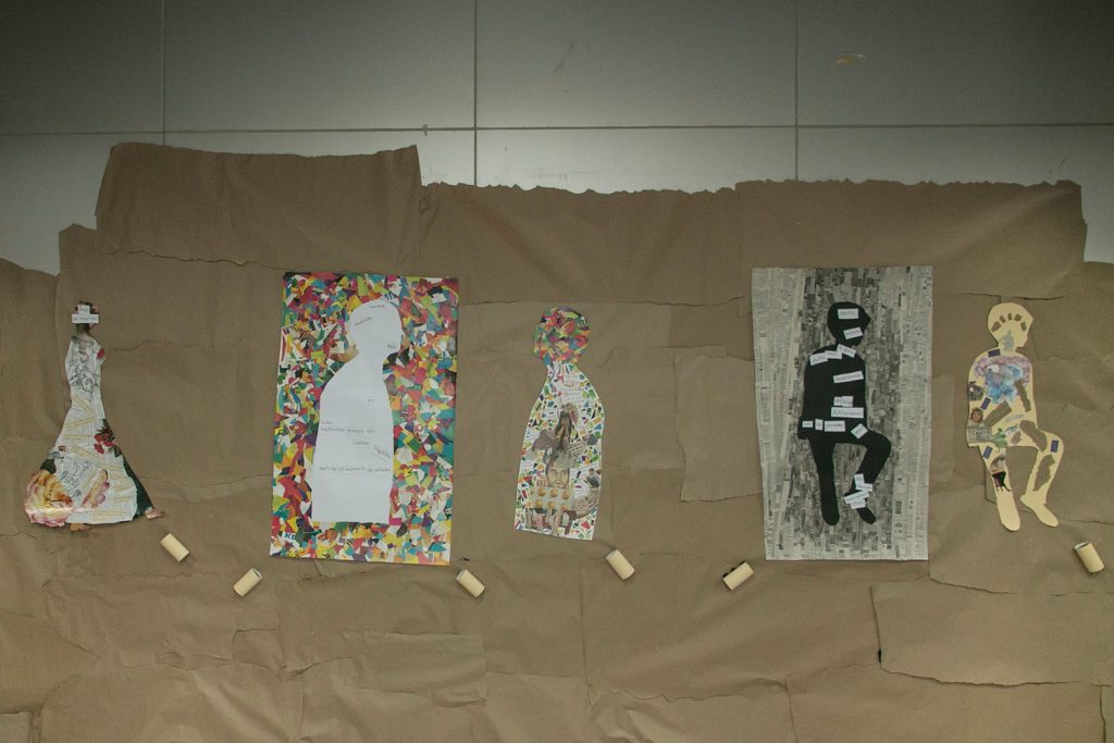“Vacíos Vivos”, de Joanne Picoult, trabajo de Paola Salazar. En las siluetas de esta muestra se expone un extracto de algo que la define. Su interior está lleno de ecos de ideas que son expresadas mediante palabras e imágenes aleatorias, símbolos que dan formas. El único puente a una exploración caótica, de un vacío vivo, de nuestra silueta incógnita.