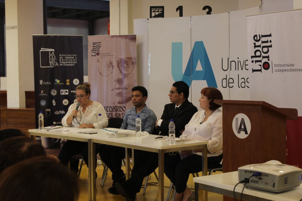 Tres mesas de diálogo se desarrollaron hoy, miércoles 17 de julio, como parte del Simposio Medardo Ángel Silva y en el marco de la V Edición de Libre Libro. Siomara España, Cecilia Velasco y Raúl Vallejo (foto 1) presentaron “Silva total”, una ponencia centrada en la poesía, crónica y narrativa del autor guayaquileño. Se realizó un recorrido por la infancia del autor, primeros pasos en la poesía, sus crónicas más importantes y “María Jesús”, su única novela publicada.