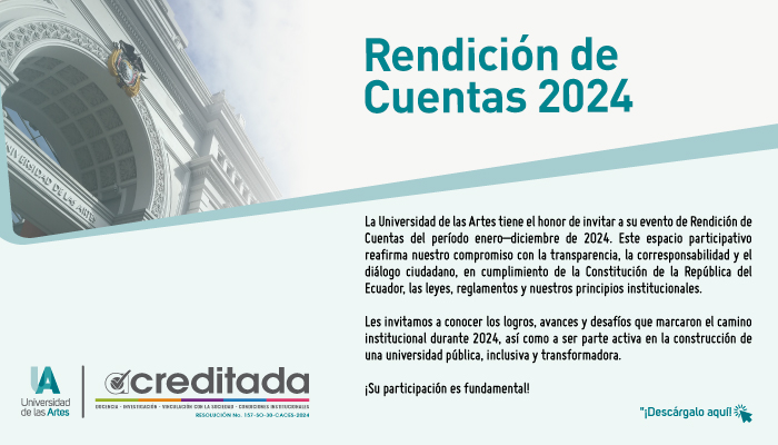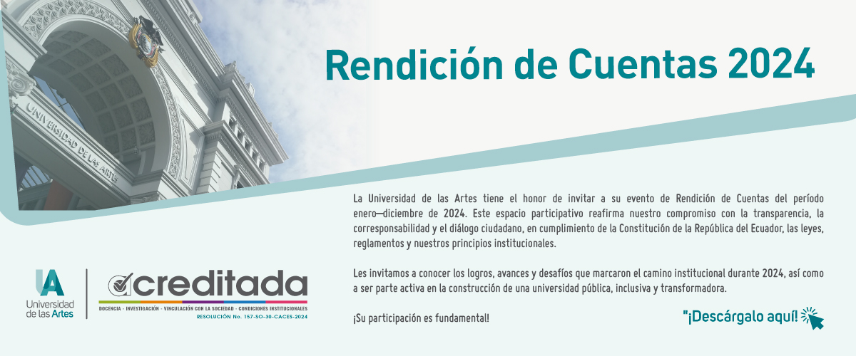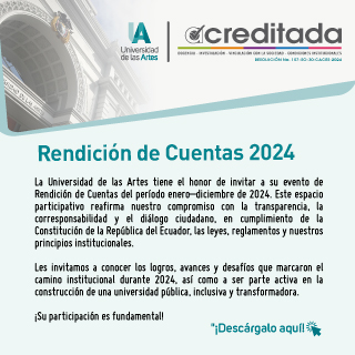 La Universidad de las Artes es la primera institución pública de educación superior en artes a escala nacional. Conoce en detalle su Transparencia, Rendición de Cuentas, Planificación y gestión estratégica y Talento Humano.