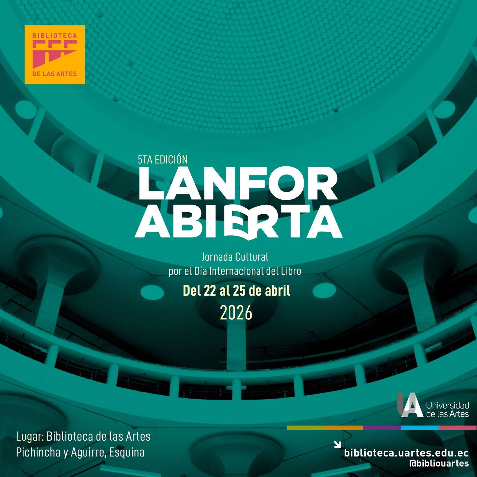 Piso 1 - Biblioteca de las Artes Biblioteca de las Artes, Aguirre y Panamá esquina, Guayaquil, Guayas, EcuadorLanfor Abierta 2026 - Agenda de actividades La Biblioteca de la Universidad de las Artes te invita a ser parte de Lanfor Abierta, una programación cultural que celebra el Día Internacional del Libro con actividades para toda la comunidad.Del 22 al 25 de abril, disfruta de: Charlas y conferencias especializadas Presentaciones de libros Actividades infantilesRevisa […]