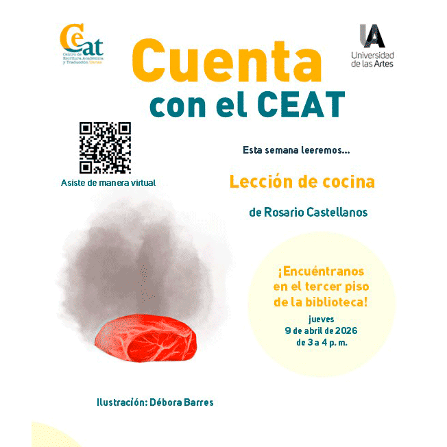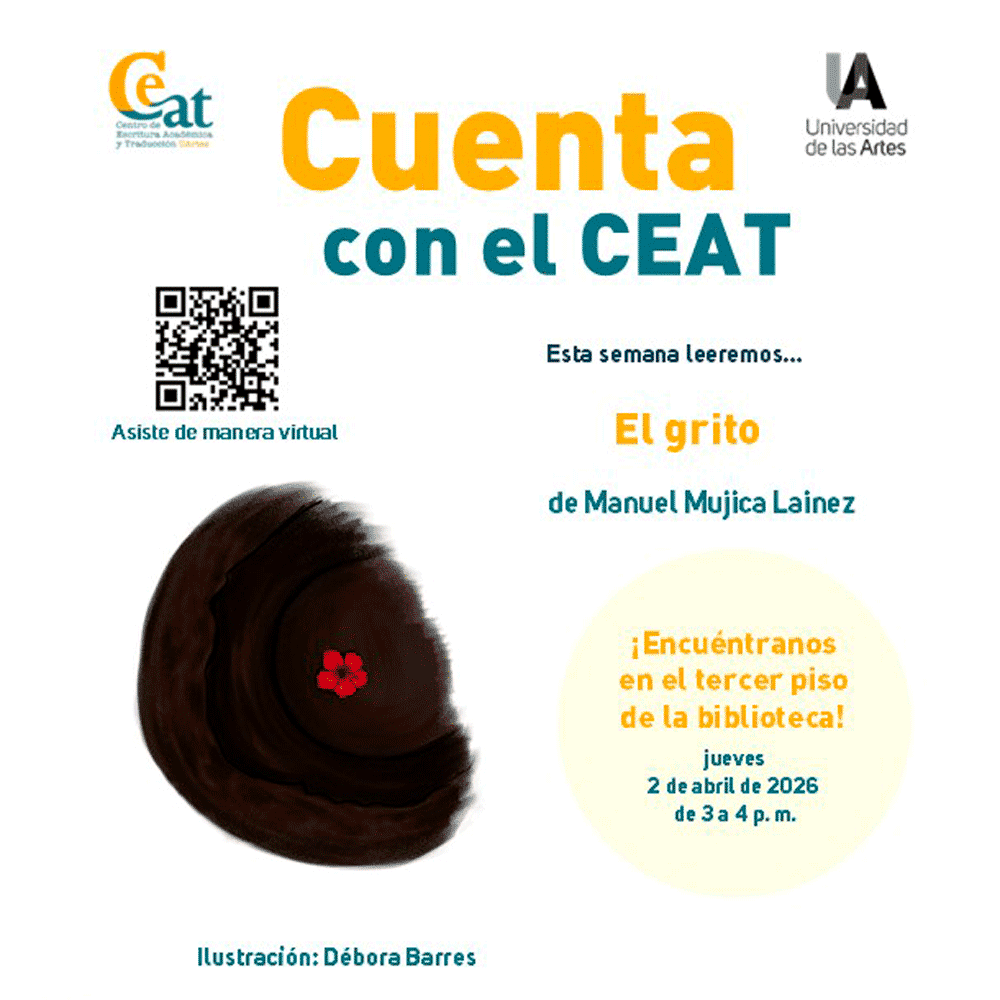 Piso 3 - Biblioteca de las Artes Biblioteca de las Artes, Aguirre y Panamá esquina, Guayaquil, EcuadorAcompáñanos de 3 a 4 p.m. en el tercer piso de la Biblioteca. En ese rato, leeremos en voz alta y en secuencia un cuento de algún/a autor/a hispanoescribiente, para luego conversar sobre nuestras apreciaciones. Estas cordialmente invitado. ¡Anímate! Si no puedes asistir presencialmente, Cuenta con el CEAT tiene la opción virtual. ¡Somos […]