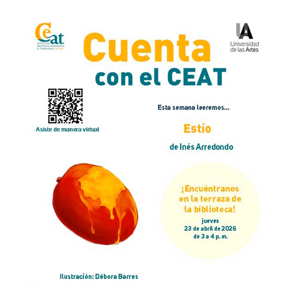 Sala multifuncional (terraza) - Biblioteca de las Artes Biblioteca de las Artes, Aguirre y Panamá, esquina, GuayaquilEste jueves, de 3:00 a 4:00 p. m., te esperamos en la terraza de la Biblioteca de las Artes (Sala Multifuncional), para vivir una experiencia diferente: leeremos en voz alta y de manera secuencial cuentos de autores hispanoescribientes y, al finalizar, abriremos un espacio para dialogar, reflexionar y compartir nuestras apreciaciones en un ambiente cercano, […]
