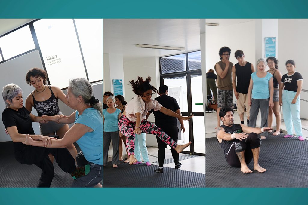 Desde su inicio, el taller invitó a repensar el cuerpo no solo como instrumento artístico, sino como territorio de comunicación y confianza. Las primeras actividades incluyeron estiramientos de cuello, hombros y cadera, junto con ejercicios de fuerza en brazos y tobillos.