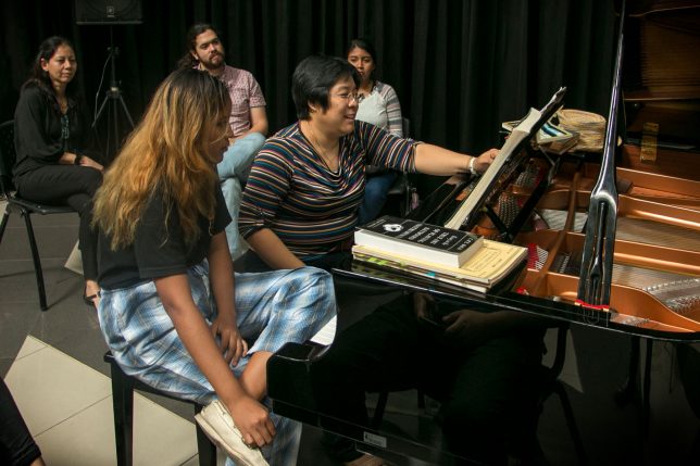 Hoy, jueves 26, Meining Cheung dirigió un segundo taller sobre “Técnica Pianística”, de 08h00 a 11h00, en el Salón de Uso Múltiple. Asimismo, Saúl Torres (UArtes) dio por la tarde el taller “Construcción de marimbas”, en el edificio Enrique Tábara.