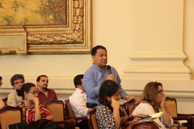 “Venimos ilusionados de observar esta reunión y agradecidos por el enriquecimiento que hemos tomado”, dijo Claudio Panta, de la Universidad Nacional de Música de Perú, en el acto de cierre del I Encuentro Iberoamericano para la Evaluación de la Calidad de las Educación Superior en Artes. Se registró en el salón Simón Bolívar de la Gobernación del Guayas. Allí se leyó la Declaración de Guayaquil 2019.