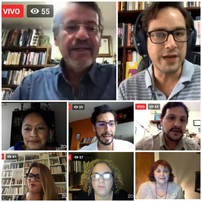 Mediante videoconferencia por Zoom, y bajo la conducción de José Miguel Cabrera, director de UArtes Ediciones, en la cita participaron Raúl Vallejo, director de la Escuela de Literatura y de Pie de página, y los docentesAndrés Landázuri, Maritza Cino, María Paulina Briones, Siomara España, Javier Pérez y Yala Lema, de quienes en la edición del I Semestre 2020 constan poesías y estudios.