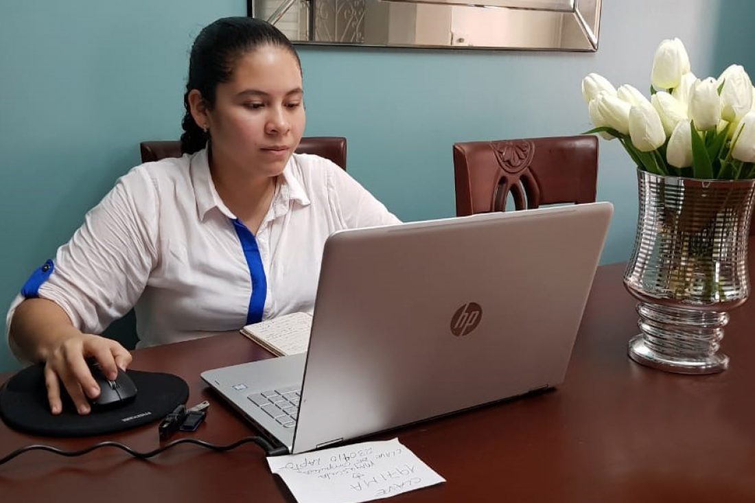 “Para mi sustentación en línea realicé un video con un recorrido de lo que fue la exposición. Estructuré las diapositivas de forma que la explicara visualmente con registros fotográficos, visualizaciones 3D de las obras y el espacio de la muestra. Con ayuda de mi tutor, el docente Cristian Villavicencio, hice varias pruebas para familiarizarnos con la herramienta Zoom”.