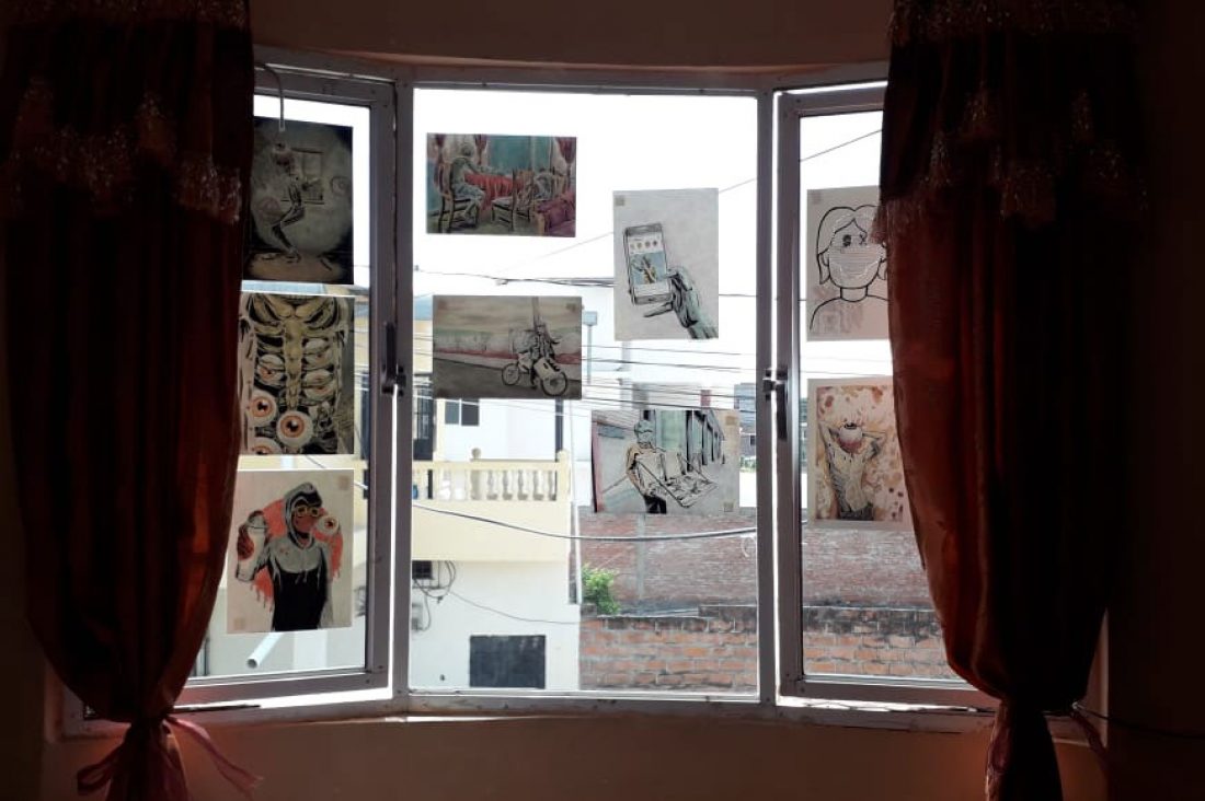 La segunda serie es la más significativa en el ahora, pues Kevin Alarcón intenta retratar el diario vivir sin llegar a la crítica, pero desde el encierro por cuarentena. Es un nuevo contexto de vida y el artista plasma, en cada ilustración, imágenes que indican cómo las personas viven el confinamiento en casa a través de las redes sociales; las personas que no ven como impedimento el toque de queda y salen a beber irrespetándolo; y, los que tienen que salir por necesidad, porque es por su trabajo diario que pueden comer.