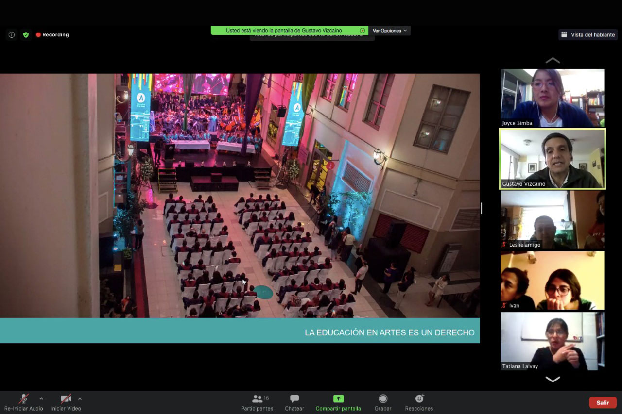 La reunión virtual que Gustavo Vizcaíno, director de Gestión Académica UArtes Quito, mantuvo este jueves 11 de junio de 2020 con los estudiantes de la Unidad Educativa Miguel Moreno Espinosa de la capital resultó satisfactoria no solo para nuestra institución académica, sino para los alumnos que en compañía de sus padres se conectaron a la videoconferencia.