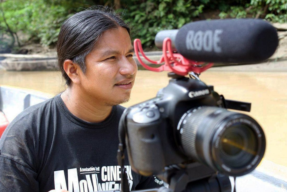 “Quería ser actor, pero a finales de los noventa no tuve la posibilidad de estudiar porque como soy indígena kichwa amazónico estaba lejos de todo acceso de comunicación. Llegó entonces la chance de trabajar en una radio de los misioneros católicos, en un programa bilingüe; luego participé en un taller con Asocine –de cine y video– y en otro de radio y video popular en Valparaíso, Chile. Con Amazon Watch hice un taller de edición de vídeos y así fui capacitándome y sigo haciéndolo, sigo aprendiendo”, indica Eriberto Gualinga, quien, a la par, ha dado charlas y clases en universidades ecuatorianas y de otros países, como Estados Unidos, acerca de la comunicación indígena. Él es miembro activo de la Escuela Ambulante de Cine y Video Comunitario Sacha Manchi.