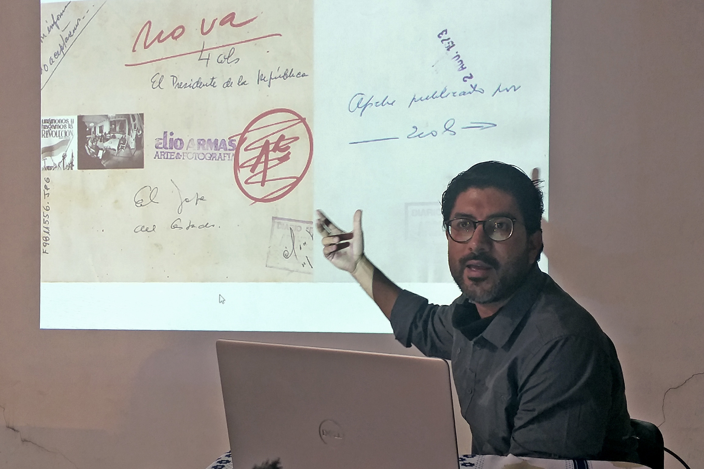 Las fotografías que tuvieron en sus manos y revisaron, señala, tenían en su reverso pies de foto, información básica, códigos, sellos, perforaciones, tachones, la medida real en algunas ocasiones, pliegues, dibujos, líneas, pero hay algo que es importante: los sellos que tenían estas fotos eran sellos que mencionaban el nombre del fotógrafo: Elio Armas, especial para El Telégrafo, o Foto Jordán, o Escobar Jr. Y cuando trabajaron con negativos, la información de los negativos estaba de forma somera en los sobres, donde había un pie de foto con fechas, lugares, personajes, y mencionaban los nombres del fotógrafo: como Omar Torres, Carlos Granja. “Uno de ellos tenía un acercamiento importante con las dictaduras, con dos: Rodríguez Lara y Alfredo Poveda. Se trata del fotógrafo Elio Armas”. “Hay fotos de Rodríguez Lara en Galápagos, en traje de baño con gente cercana, muy cerca del mar, donde él aparece con su familia e hijos en su casa, una foto íntima. Y creemos que este fotógrafo tuvo una mira diferente y claro tenía una cercanía con ellos”, indica Amaury.