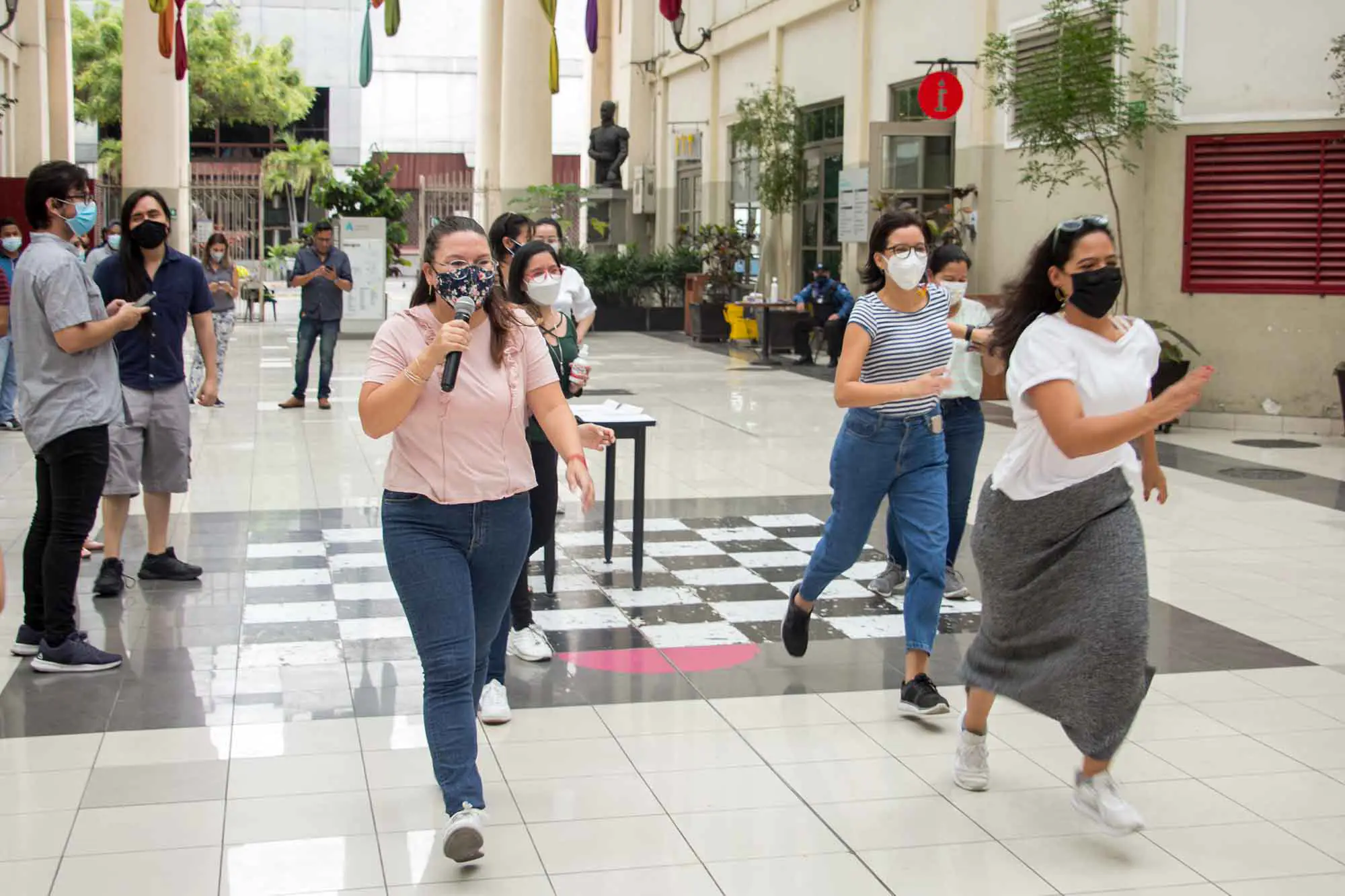Después del acto protocolar, empezaron las dinámicas para lo cual se dividieron en grupos. El objetivo es conocer mejor a los compañeros de labores. Finalmente el grupo ganador recibió una torta de chocolate auspiciada por el restaurante Mono Capuchino, que opera dentro de las instalaciones de la UArtes.