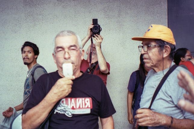 La calle 9 de Octubre es mi favorita para hacer fotografías porque siempre pasan cosas interesantes: chihuahuas con vestidos, gente preguntona, Uxi combatiendo un metropolitano y Matt con su jugo de caña.