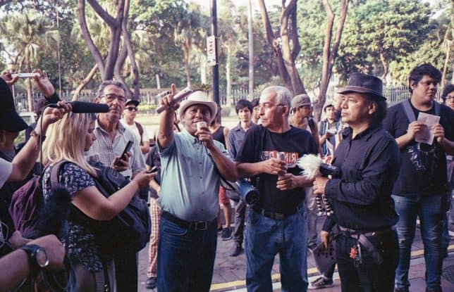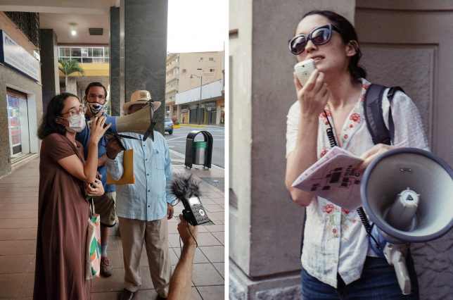 Libertad Gills, Martín Bauss y Gabriel Paredes nos comentan brevemente de qué trata el recorrido y qué lugares visitaremos. Deja vú. Esto ya lo he vivido. Vislumbré un 12 julio de 2019, la primera “Ruta Sin Cine” a.C. Reviso mi archivo y encuentro similitudes entre las fotografías que hice hace dos años y ahora. Pero, como esta realidad es de dualidades, también hay diferencias.