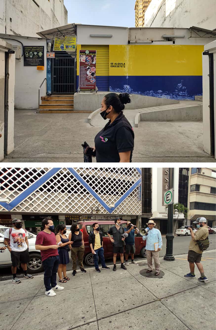 “La Universidad de las Artes en la ciudad” fue la temática que abrigó esta propuesta, cuya guía estuvo a cargo del Colectivo Guayaquil Analógico (Libertad Gills y Martín Bauss). Se realizó desde las 16:30 hasta las 17:30, y partió del Centro de Producción e Innovación MZ14, ubicado en Panamá y 9 de Octubre.