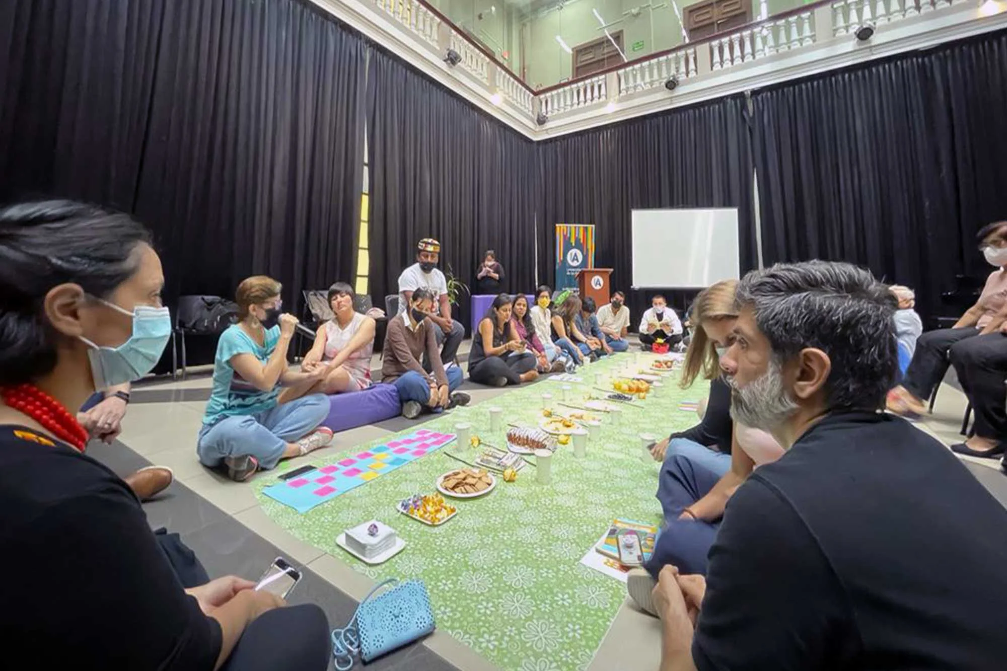 Reunidos en cuatro grupos, dirigidos estos por estudiantes UArtes, los participantes del III Encuentro de Vinculación con la Sociedad analizaron en los llamados “Círculos para el intercambio” preguntas como ¿qué rol debe cumplir la Universidad de las Artes en su relación con las comunidades?, ¿cómo las artes y la creación pueden aportar en la construcción de nuevas relaciones para enfrentar a la crisis?, ¿qué prácticas organizativas pueden guiarnos? y ¿cómo podemos relacionarnos mejor con organizaciones, comunidades y redes glocales?