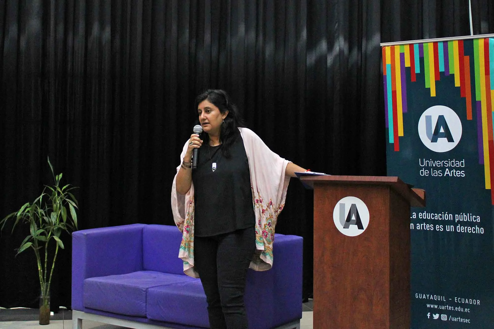 María José Icaza, titular de la Dirección de Vinculación con la Comunidad de la UArtes, explicó ampliamente cada una de las acciones que se han venido desarrollando en beneficio de comunidades no solo de la provincia del Guayas, sino del país. Mencionó sus procesos, los aprendizajes recíprocos, el trabajo in situ, las propuestas. Destacó la participación de estudiantes y docentes. Hizo reflexiones, habló de los retos.