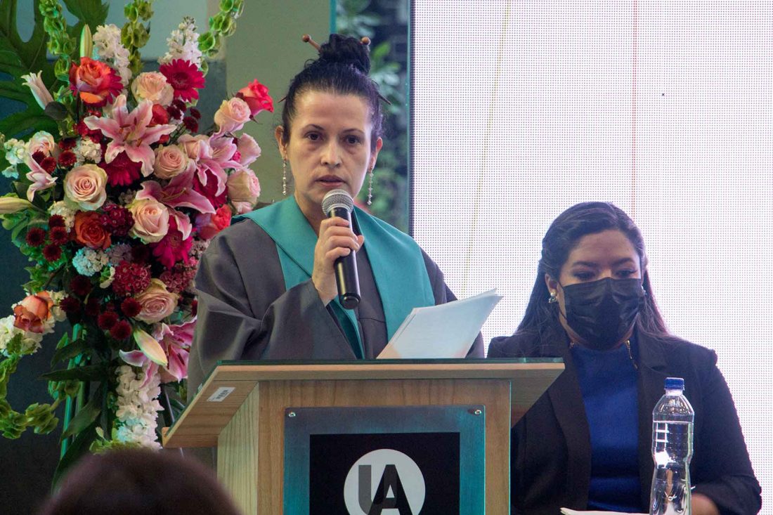 A la entonación del Himno Nacional le siguió la intervención de Olga López, vicerrectora de Posgrado e Investigación en Artes, quien trajo a la memoria los inicios de la Escuela de Posgrados y de las maestrías que actualmente oferta. También hizo un detallado recuento de las 34 tesis de grado de los maestrantes (su discurso en la nota siguiente).