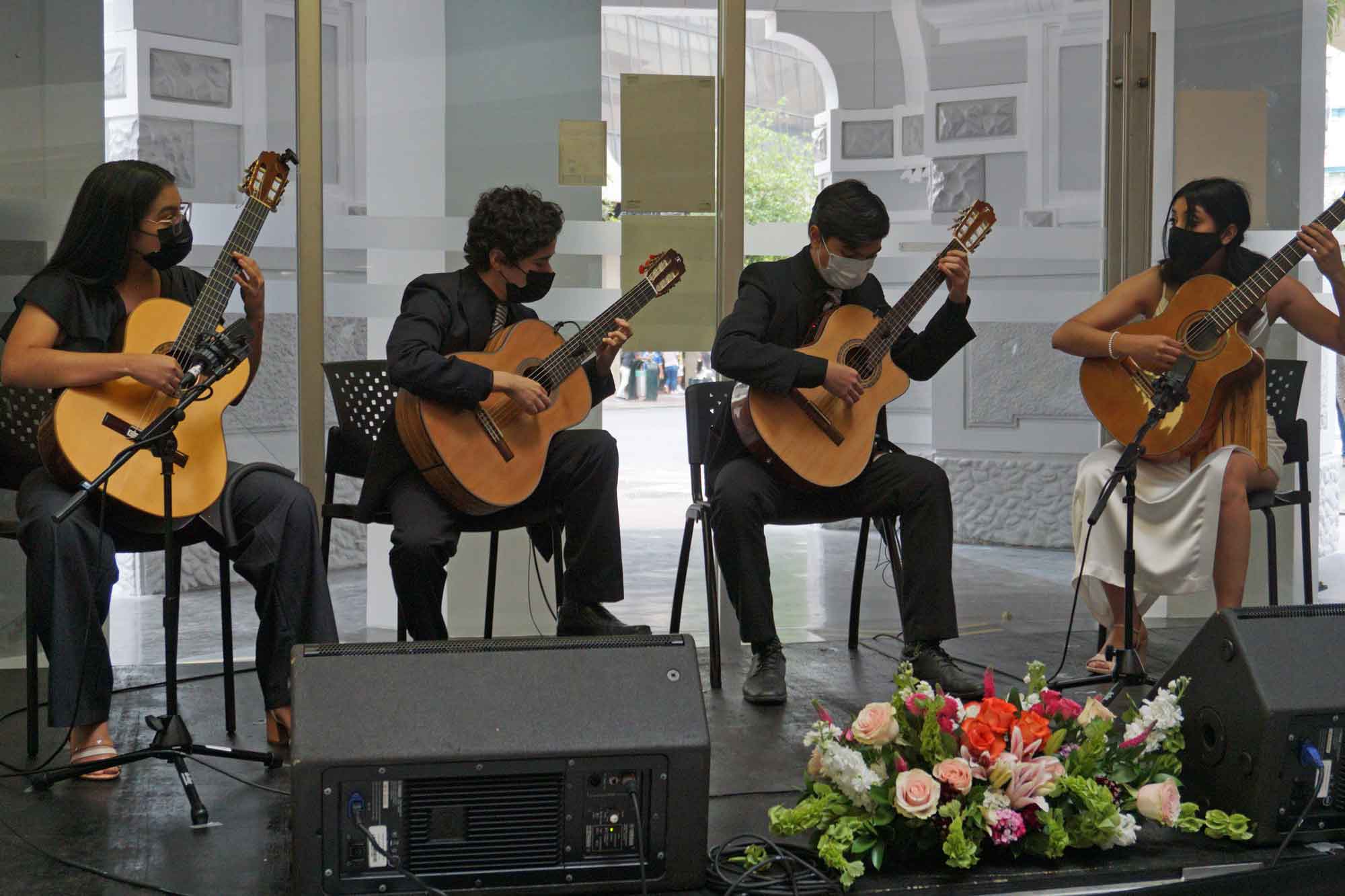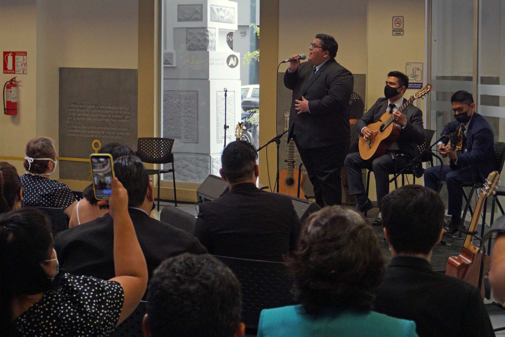 Lo mismo se hizo con los graduados de la carrera de Producción Musical y Sonora. La EAS propuso entonces dos intervenciones artísticas: Steven Mejillón, acompañado por Henry Borbor; y, un ensamble de guitarra con Nuria Meza, Ana Alba, Efraín Cuesta y Eduardo Cedeño.