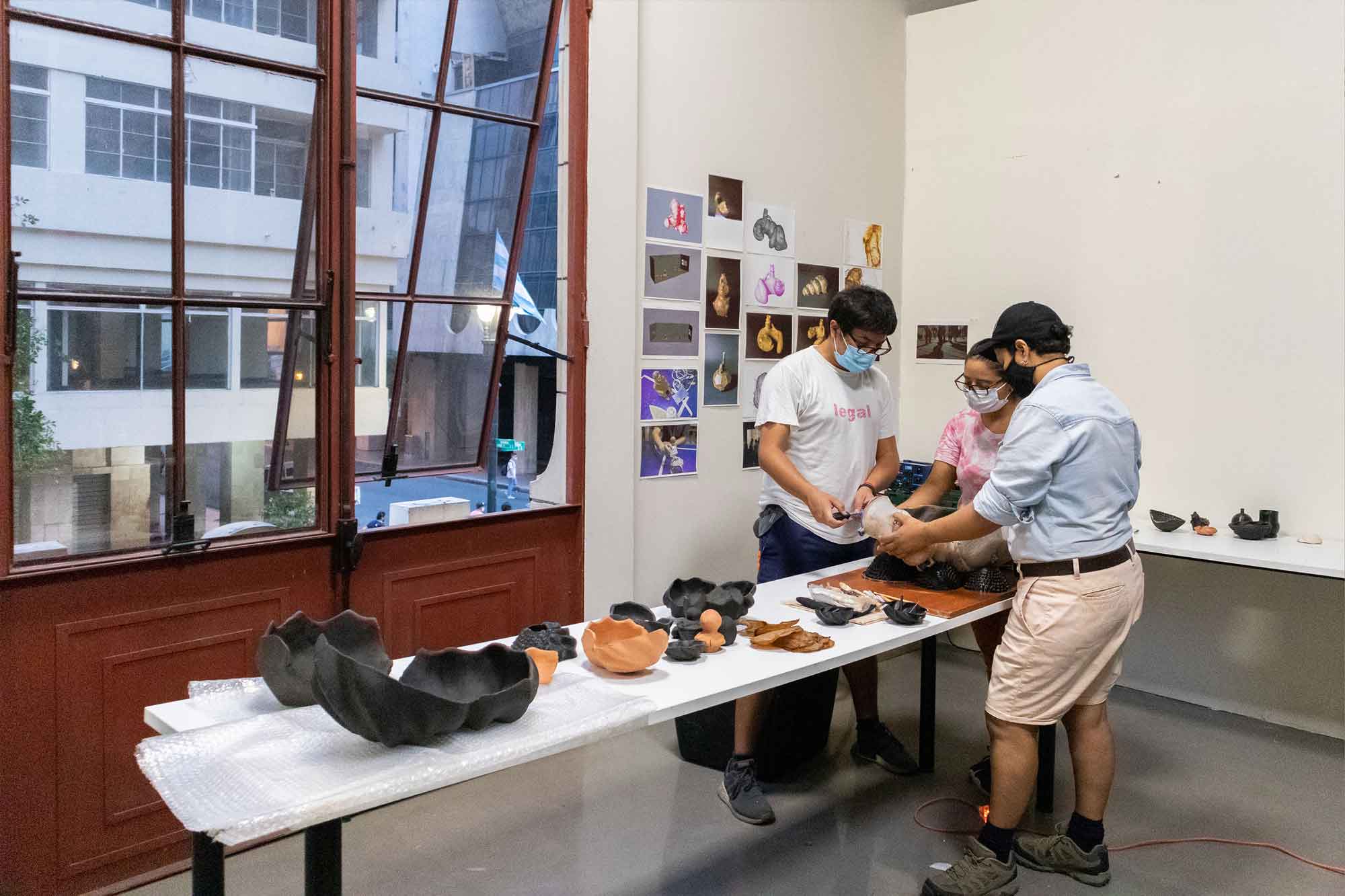 Como parte de los procesos pedagógicos de la UArtes, Villavicencio menciona el trabajo desarrollado con estudiantes como Belén Mendoza, quien en sus pasantías puso en práctica los conocimientos sobre diseño en 3D adquiridos en el itinerario Nuevos medios y Nuevas tecnologías; Ruth Cruz, ahora exalumna, su amplia trayectoria en el montaje; y, Gabriela Fabre, la producción y construcción de piezas de cerámica, además de colaboraciones de los docentes Fredy Vallejos y Diego Benalcázar, y de James Pacheco, técnico de EAV. “Es un proceso artístico de muchas fases, desde la ideación hasta los prototipados para ver cómo van a salir las piezas y puesta en escena”.