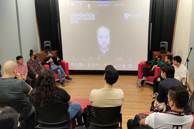 Anne-Sophie Mongeau con su exposición online sobre “The Game Audio Journey” y Leonaar de Graeve con la charla “La Filosofía Cualitativa In/Out The Box”, ambas retransmitidas desde la Sala de Experimentación Sonora (MZ14), constaron junto con Ana Carolina Baquero y el tema “Derechos de autor en el mundo de la música” (Sala de Usos Múltiples) y Denisse Lalama, Víctor Espinosa, Stalin Arévalo, Juan Pazmiño y Jonathan Chafla –hablando de la Sección Estudiantil de la AES-UArtes– en la agenda de este día, cumplida con prolijidad.