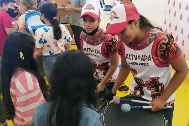 “Batukada Severo Parche lleva ya algunos meses en proceso de formación e incluso concluyó ya una primera parte, es por eso que los invitamos a que dieran una clase demostrativa de lo que sus integrantes han aprendido. Cada uno mostró los instrumentos, detalló sus características e hizo escuchar cómo sonaban de manera individual y en conjunto”, indicó la directora de Ría. Los niños presentes en la sala, ubicada en la planta baja de la Biblioteca de las Artes, pudieron conocer de cerca estos tambores, de diferente tamaño y sonido, y hasta tocarlos. “El grupo realizó ciertos ejercicios sonoros y de allí se presentó”.
