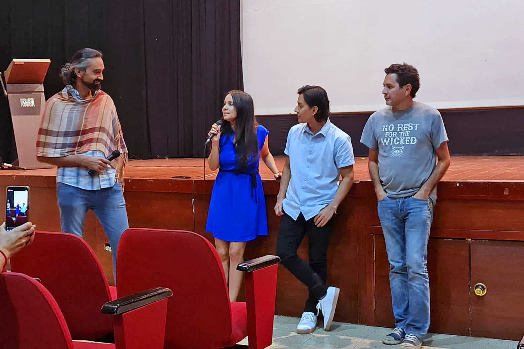 En la foto principal, y durante el foro, Federico Koelle Fuentes (izq.), moderador; Ileana Matamoros, directora de Rosita; Michael Lojano, director de Sombras Envolventes; y, Rafael Méndez Meneses, director de Jéssica.