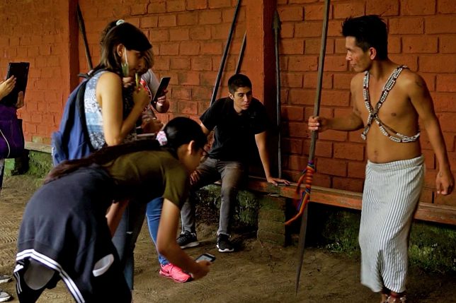 Fotos: Cortesía UAPK. En imágenes, los estudiantes UArtes con los miembros de la comunidad Shuar con quienes mantuvieron los diálogos y de quienes recibieron valiosa información de sus costumbres y tradiciones.