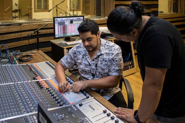 Además de haber obtenido sus licenciaturas en la EAS, Dávalos, Lalama y Guerrero también tienen en común trabajar en la UArtes como analistas. Él en el área técnica de los estudios de grabación y aulas multimedia, y ellas en la dirección de la escuela y en la asistencia técnica de montaje de equipo y despacho, respectivamente. “Como graduado nunca quise cortar la relación con la universidad, puesto que producía eventos”, anota el primero de los mencionados.