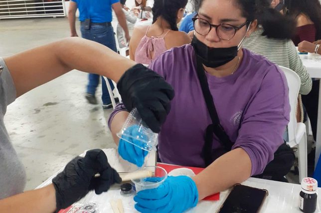 Añade que el tallerista proporcionó información clara y estuvo siempre abierto a despejar cualquier duda. La primera parte del taller fue teórica y la segunda práctica. “Pusieron a nuestra disposición materiales para palpar su calidad y acercarnos más a la preparación. En buena hora, pues muchos tememos a que la preparación no se dé manera correcta. Son productos químicos y deben usarse con medidas y volúmenes exactos. Al final pudimos quedarnos con las pruebas que hicimos”.