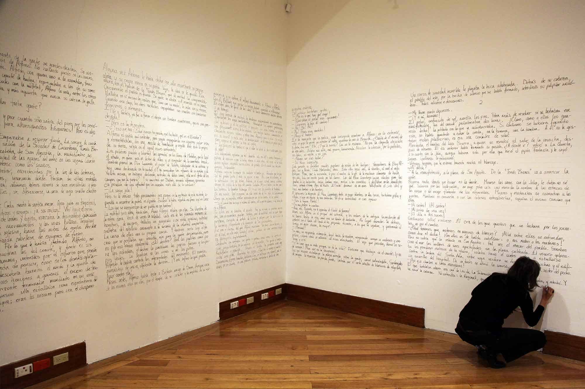 “Lo que podremos ver resulta consecuente con los cauces que estos creadores han ido perfilando en años de trabajo. Jenny Jaramillo, Gabriela Rivadeneira Crespo, Cesar Portilla y Nelson Santos son figuras que, en los noventa, se enfrentaron críticamente a la hegemonía de las bellas artes cuestionando nociones asentadas del objeto artístico, el lugar del espectador, el rol de los medios expresivos. Apuntaron con ello al borramiento de las fronteras entre estos y exploraron maneras en las que el acto creativo puede inscribirse en espacios y formas que discuten la artisticidad misma.
