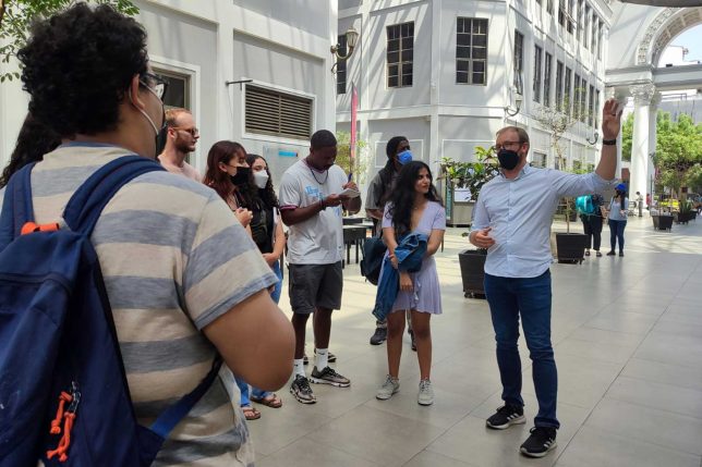 Durante su visita a nuestra institución de educación superior visitaron espacios como la Terraza del patrimonial edificio El Telégrafo, el Pasaje Illingworth, en el Palacio de la Gobernación y el auditorio de la Biblioteca de las Artes, así como la Sala de Cine y la Terraza del Centro de Producción e Innovación MZ14. Este recorrido permitió el intercambio cultural y la práctica de idiomas entre los estudiantes de ambas universidades. Adicionalmente, los estudiantes de Kennesaw State University realizaron entrevistas a los miembros de la delegación de UArtes para su proyecto de cine documental.