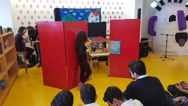 Pedro Mujica, por su parte, contó que sus alumnos de cuarto semestre (materia Laboratorio Interdisciplinario) presentaron propuestas interdisciplinarias enmarcadas en el método kamishibai y títeres. Tres historias que resultaron en pequeñas piezas teatrales. Se unieron también las PPP de los alumnos de sexto semestre, asignatura Taller en la comunidad, en la Unidad Educativa Los Vergeles, donde hicieron igualmente kamishibai y lectura de pequeñas formas narrativas propias (formato limericks).