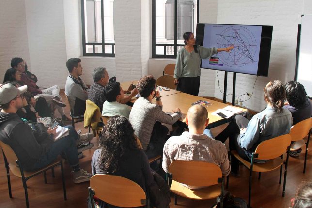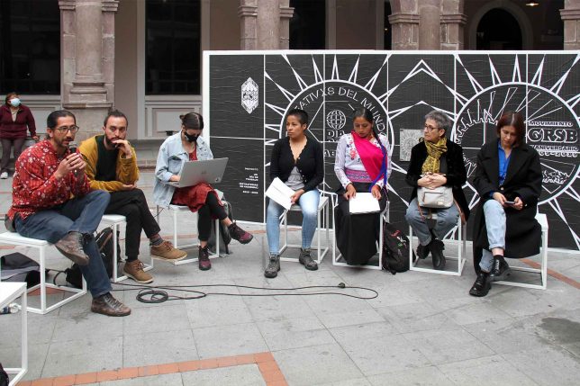 Entre los otrxs participantes de este espacio de diálogo estuvieron Carolina Leguisamo y David Páez, ambos colaboradores en espacios que tienen sus propios modelos de gestión para relacionarse con la comunidad. Ella, de la Asociación Humboldt, dijo trabajar con subvención, una condición que les permite apoyar a eventos locales que se seleccionan mediante una comisión de curaduría. Páez, mediador comunitario que es parte de de Yaku Parque Museo de Agua, indicó que al pertenecer el espacio a la Fundación Museos de la Ciudad el modelo de gestión es distinto, pues se trata de una entidad privada que maneja fondos públicos.