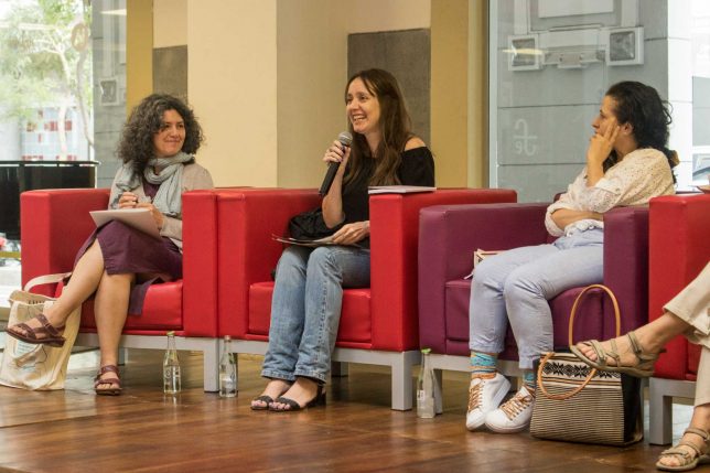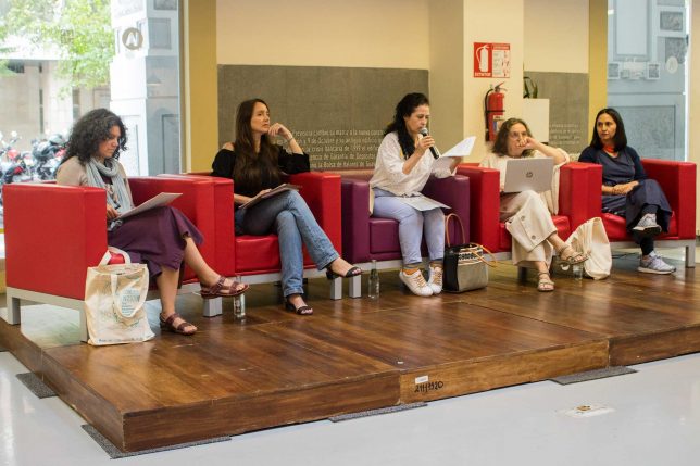 La primera en presentarse fue Alma Espino, quien, esa misma mañana, dictó junto a Gabriela Montalvo un taller acerca de la economía feminista y trabajo en el arte. Su ponencia procuraba contribuir a “Reconocernos” en el marco de las relaciones entre arte, trabajo y economía. Entre sus puntos a tratar se hallaban la centralidad de la vida y su sostenibilidad, para lo cual la economía feminista rescata lo doméstico y los cuidados, las relaciones de poder que implican dominación sobre las mujeres, los tiempos de la vida, el capitalismo en medio urbano, así como una interpretación propia de la creación artística alrededor de su campo de trabajo e investigación, planteándose la pregunta: ¿La creación artística es trabajo?