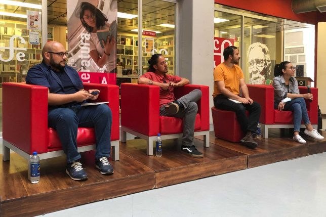 La Plaza Pública del MZ14, Centro de Producción e Innovación de la UArtes, fue testigo del desarrollo del conversatorio “Poéticas de la solidaridad: Crear a partir de la comunidad. Editoriales que amalgaman redes”, el cual fue moderado por el docente de la Escuela de Literatura, Fernando Montenegro. Las editoriales que intervinieron fueron las locales Kikuyo, Tiresias y Alectrión, y GEICA (Grupo de Editoriales Independientes de Centroamérica), invitado internacional.