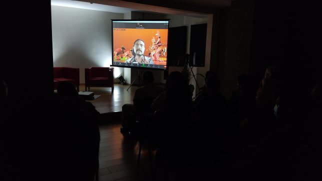Luego, de manera virtual, Francisco Ugalde, ecuatoriano que cursa estudios en Indonesia, habló del Gamelán como un sistema musical de otro mundo. Dijo que se empezó a desarrollar con la llegada del hinduismo a la Isla de Java, con instrumentos de viento, percusión y tambores, dominando incluso a los construidos en bronce, cuyo manejo es complejo. “Para que se puedan producir sonidos largos y afinación se requiere de mucho trabajo y desarrollo”.