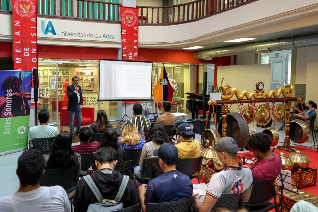 Dicho esto, Omar Domínguez propuso ver un audiovisual en el que María de los Ángeles Herrera, una de las primeras graduadas de la Maestría de Composición Musical y Artes Sonoras de la UArtes, da detalles del artículo con el que participa en la Revista Sonocordia, relacionado con los imaginarios sonoros en la creación musical, utilizando instrumentos precolombinos y medios digitales y obteniendo como resultado del proceso dos composiciones: “Tiempo, agua y polvo” y “Umbral a un sueño”.