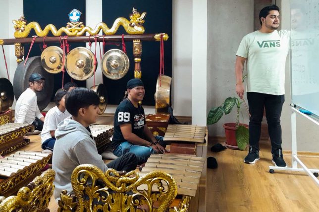 “El profesor Ngadimin se quedará hasta el 23 de diciembre y estamos aprovechando que nos comparta sus conocimientos de tradición oral para que podamos hacer uso del Gamelán por los siguientes tres años, que es lo que generosamente la República de Indonesia nos ha facilitado”, expresa Astaiza.