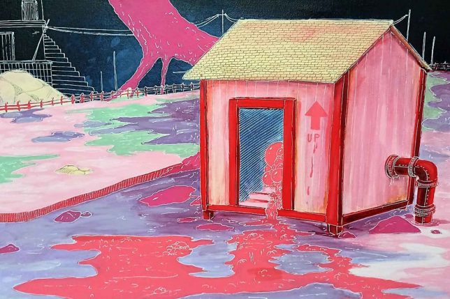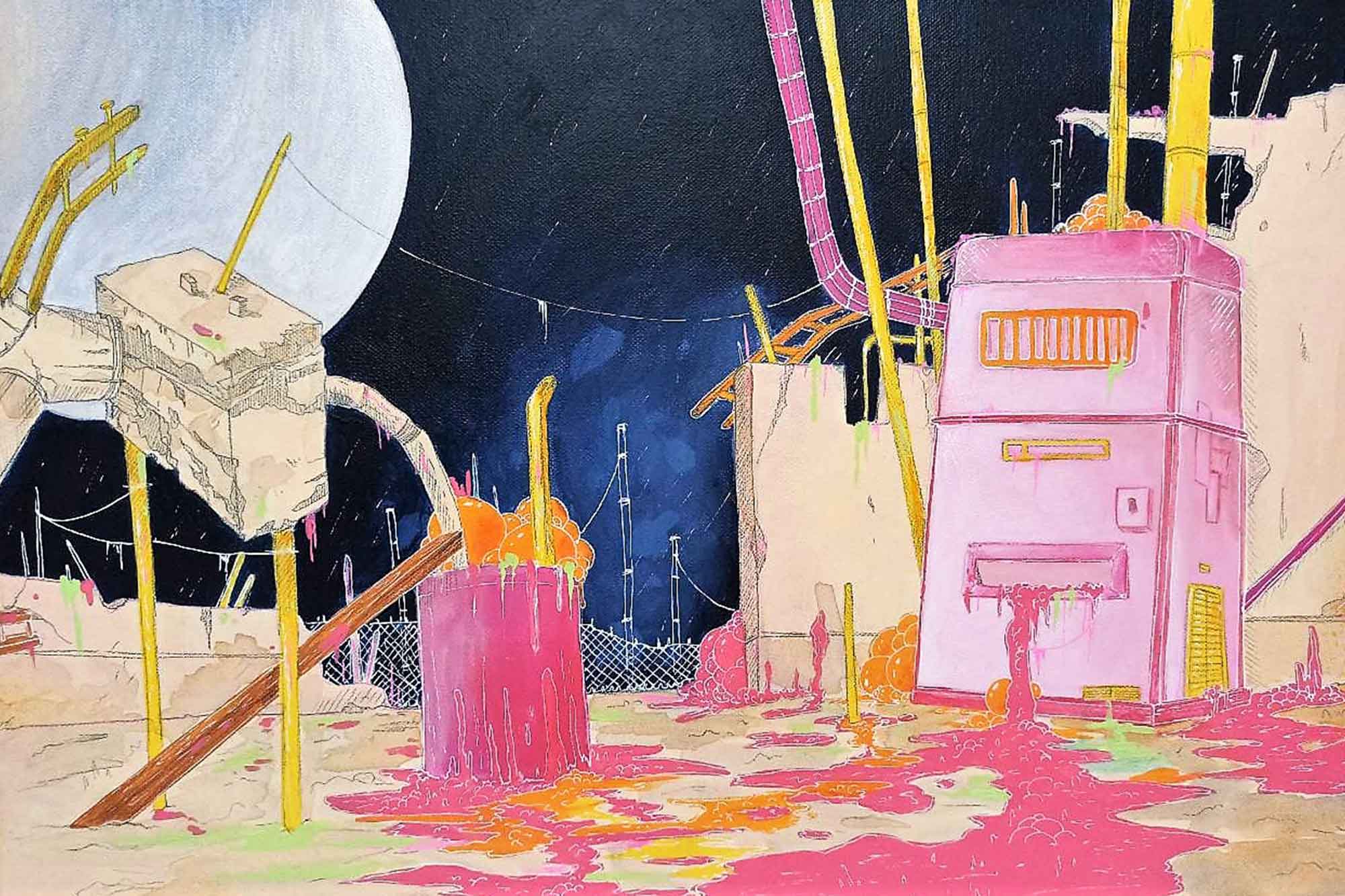 “Mi producción surge entre reflexiones y miradas dirigidas hacia una cotidianidad que habita en medio de la devastación ecológica, a partir de esto, expongo una situación más que una acción como un agente influyente en la formación y procesos de vida de los seres humanos. También aquí la urgencia de mostrar formalmente lo líquido e invasivo entre las relaciones humano-planeta. Como resultado de estas reflexiones hago evidentes paisajes que yuxtaponen lo industrial con lo habitable y viceversa, esto se configura como un acto contradictorio e irónico que hace posible una suerte de “autodestrucción” que sobrepasa y sumerge al Homo œconomicus en lo que él mismo ha provocado.