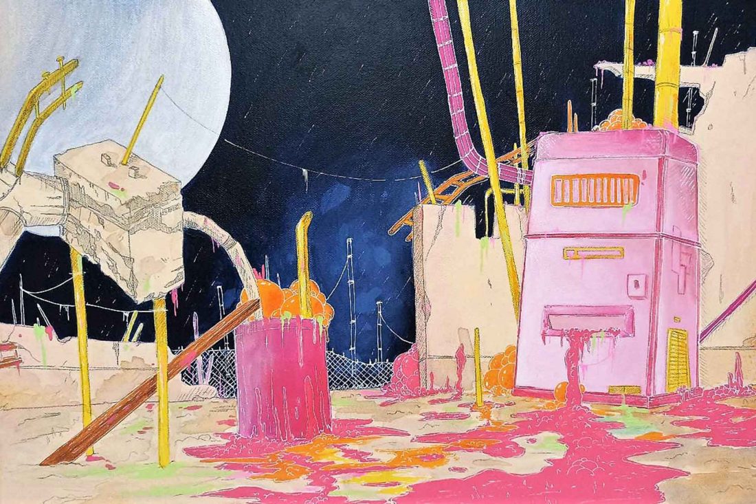 Las piezas, indica, están relacionadas con la producción pictórica a partir de una exploración en la mirada onírica de sus propias subjetividades, dentro de ciertas condicionantes de la urbe. Cita, entre otras, “el progreso, el efecto del paso del ser humano y su destrucción suavizada con pigmentos suaves como los rosas y pasteles, que contraponen mucho esta imagen en decadencia”. La artista busca priorizar en sus obras una imagen que generan los sentimientos de dolor y olvido dentro de dichos espacios de la ciudad.