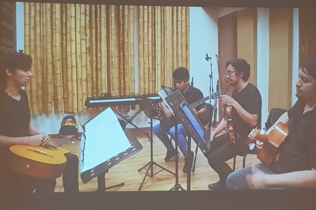 Acudimos a una diversidad de lenguajes, precisó Guzmán y mencionó, entre otras, obras como “Hapina”, del magíster Eduardo Duval, proyecto en el que se mezclan instrumentos tradicionales con aplicación de la tecnología y cuenta con las interpretaciones del también magíster Fabio Bajaña, en el violín, y David Ayola, estudiante UArtes.