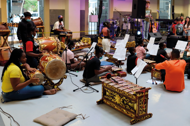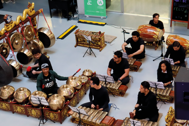 Para el último Jueves EAS del año, la Escuela de Artes Sonoras programó presentar los resultados del taller de Gamelán impartido por el instructor indonesio Ngadimin, lo cual maravilló este 22 de diciembre al público que pudo atestiguar el aprendizaje logrado no solo por estudiantes, docentes y funcionarios UArtes, sino por alumnos de instituciones educativas, como el colegio República de Francia, y de sectores de Guayaquil, como el barrio Nigeria, ubicado en la Isla Trinitaria.