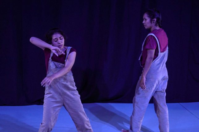 Allison Alarcón y Arianna Hidalgo proponen “REFLEJOS, una mirada a través del cuerpo”. De la propuesta anotan: “Una mirada a través del espejo del inconsciente, la parte más pura y natural, donde el yo se mueve bajo la instancia más relevante para el psicoanálisis, entablando una relación entre nuestro mundo externo bajo el control del ello. REFLEJO es una investigación de la teoría de Freud llevada a la puesta en escena”.