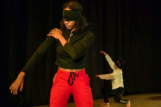 De Keila Barrezueta y Erick Barrionuevo se vio “ECLIPSE”, una obra basada en el comportamiento de un cuerpo en la oscuridad y la claridad. La idea nació a partir de la película “Bird box” de la autora Susanne Bier, cuya trama trata de dos hermanos que tienen que enfrentarse a un mundo oscuro donde la duda y el temor se aferran a ellos, pero, al mismo tiempo, buscan descubrir que hay más allá de las vendas que obstruyen sus ojos.