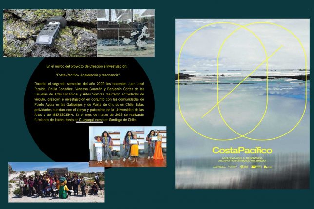 En el marco del proyecto “Costa-Pacifico: Aceleración y resonancia”, durante el segundo semestre del 2022 los docentes de la Universidad de las Artes Juan José Ripalda, Paula González, Vanessa Guamán y Benjamín Cortés, de las escuelas de Artes Escénicas y de Artes Sonoras, realizaron actividades de vínculo, creación e investigación en conjunto con las comunidades de Puerto Ayora, en las Islas Galápagos, Ecuador, y de Punta de Choros, en Chile.